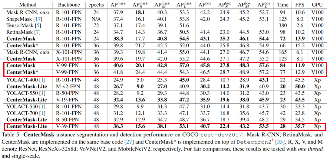 注2:CenterMask性能优于 TensorMask、RetinaMask;CenterMask-Lite优于YOLACT,速度高达50FPS!现已开源!