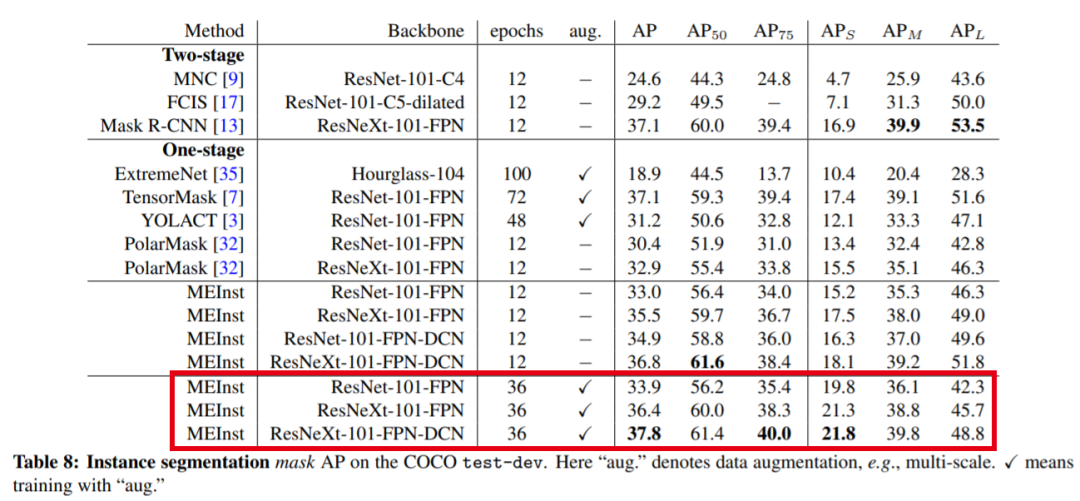 注:性能优于PolarMask、YOLACT和TensorMask等网络