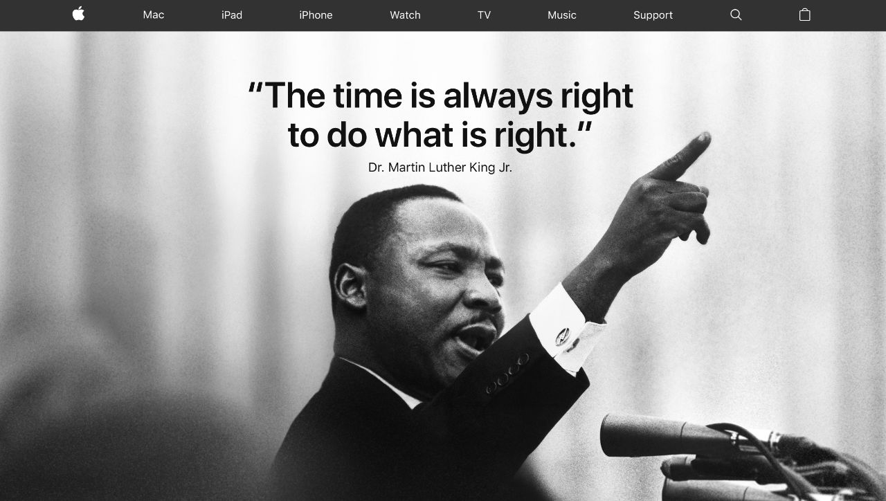 @IT之家【苹果官网全幅照片纪念马丁路德金】今天(1月16日),苹果主页Apple.com换上了马丁·路德·金的全幅照片,纪念这位著名的美国民权运动领袖。