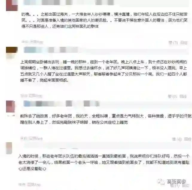 这些老年人透过“夕阳红旅行团”暴露的失格行为,不仅引起了年轻人的不满,也为同龄人怨声载道,一些生活在景区的本地老人也常常吐槽老年旅行团的不文明行为简直是给老年群体抹黑。