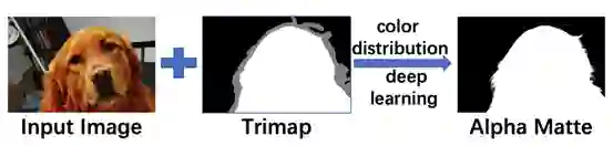 给定一张RGB的彩色图 I,要求得一张表示像素不透明度的Alpha Matte,可见其约束度是远远不够的。通常情况,在求解该问题的时候是借助于Scribble或者Trimap的方式来增加一些辅助的约束信息,以基于Trimap的方法为例,