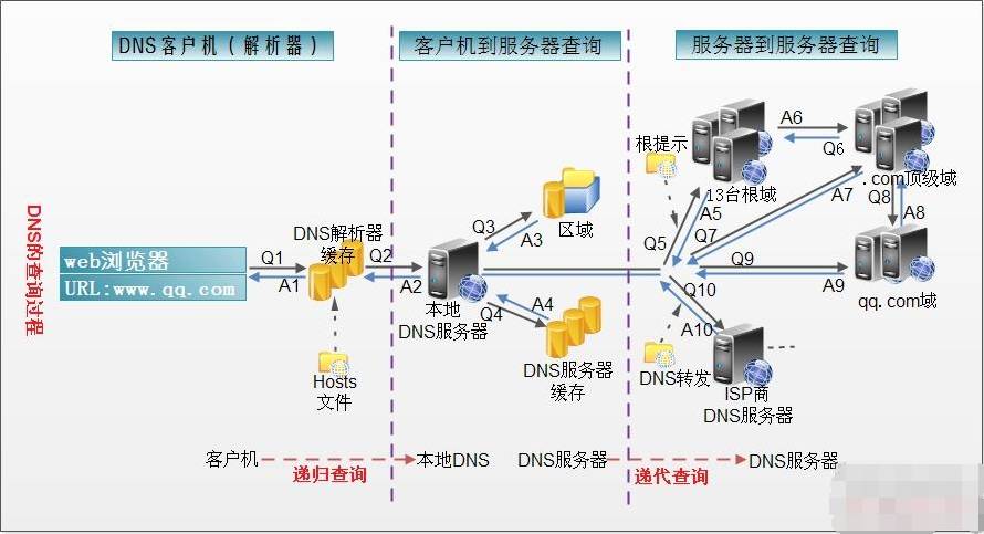 不管是本地 DNS 服务器用是是转发,还是根提示,最后都是把结果返回给本地 DNS 服务器,由此 DNS 服务器再返回给客户机。