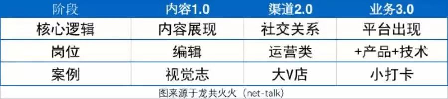 3.0阶段随着小程序等出现,配合社群等,新媒体单独可以作为平台业务出现。