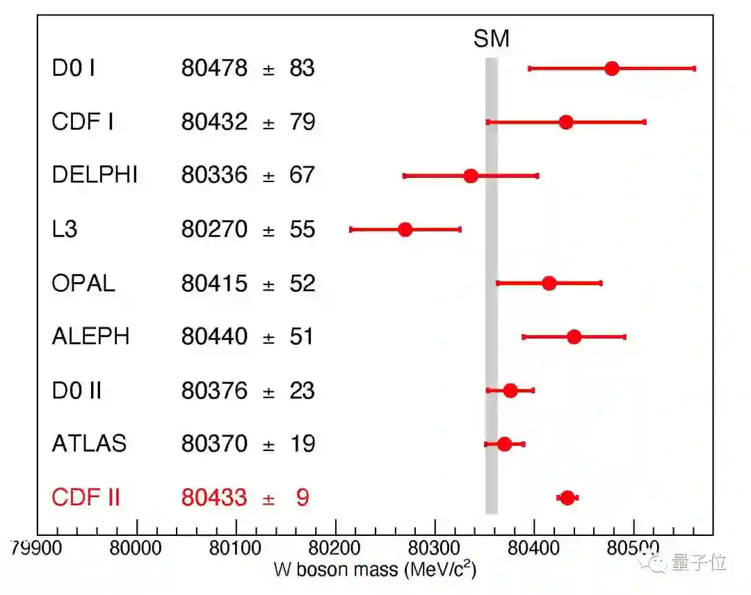 需要说明的是,费米实验室的这个最新结果,与他们在2012年公布的数据(80387±19MeV),以及欧洲核子研究中心(CERN)通过ATLAS实验得到的结果(80370±19MeV)均不同。