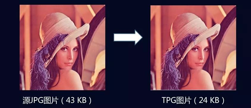 (同等质量图片,TPG 文件比 JPG 文件大小减小 44%左右)