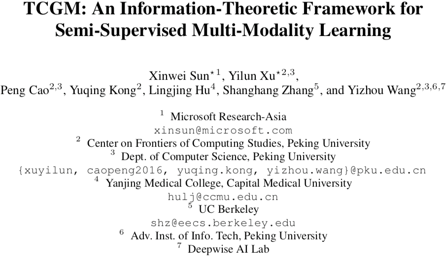 本文是计算机视觉领域顶级会议 ECCV 2020 入选 Oral 论文《基于信息论的半监督多模态学习框架 (TCGM: An Information-Theoretic Framework for Semi-Supervised Multi-Modality Learning)》的解读。