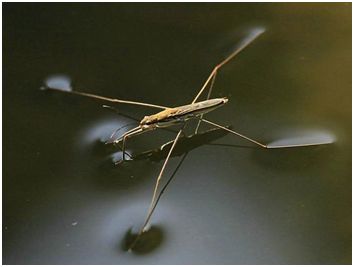 水蜘蛛之所以会漂浮在水面上,使是充分利用了水的表面张力。一方面,水蜘蛛腿部狭长,使其自身重量被有效分散。另一方面,这类动物一般使表都有一层拒水绒毛,使其身体始终处于水的表面。
