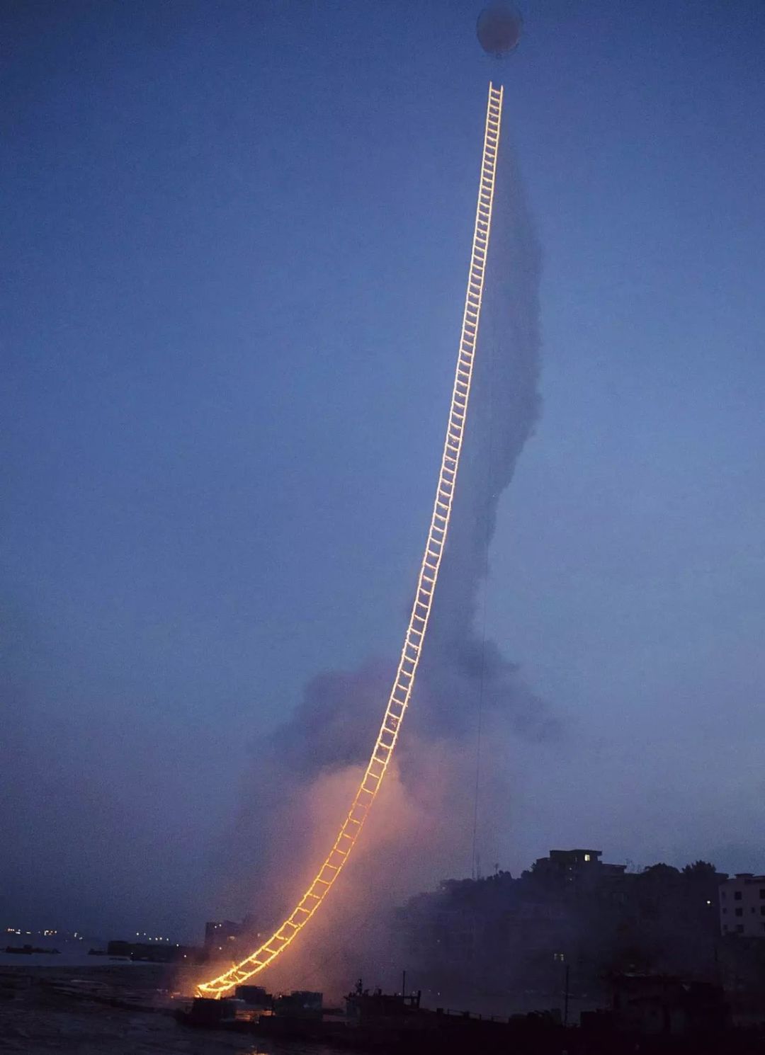 上世纪 80 年代从泉州出发走向世界,成为全球知名爆破艺术家,蔡国强再度回到故乡泉州,完成了「天梯」。
