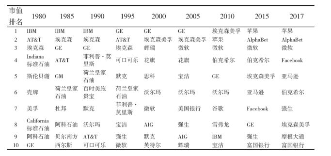 20 世纪80 年代,IBM 和AT&T 排在前列,它们分别是一家计算机公司和一家电信公司,后面基本都是石油公司。