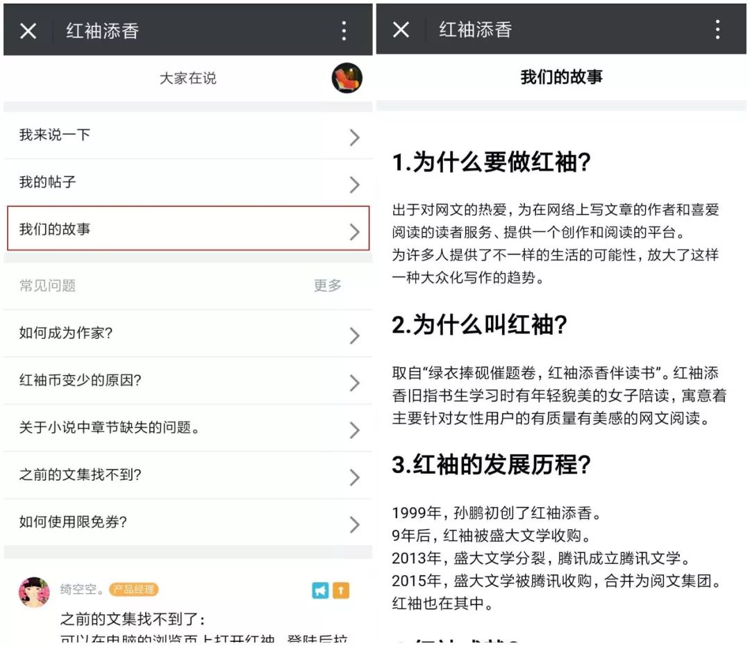 No.2 红袖作为受欢迎的阅读软件之一,用户都很好奇你们团队是怎样的一群人,能和大家分享一下产品故事吗?用户从哪里可以了解你们团队呢?