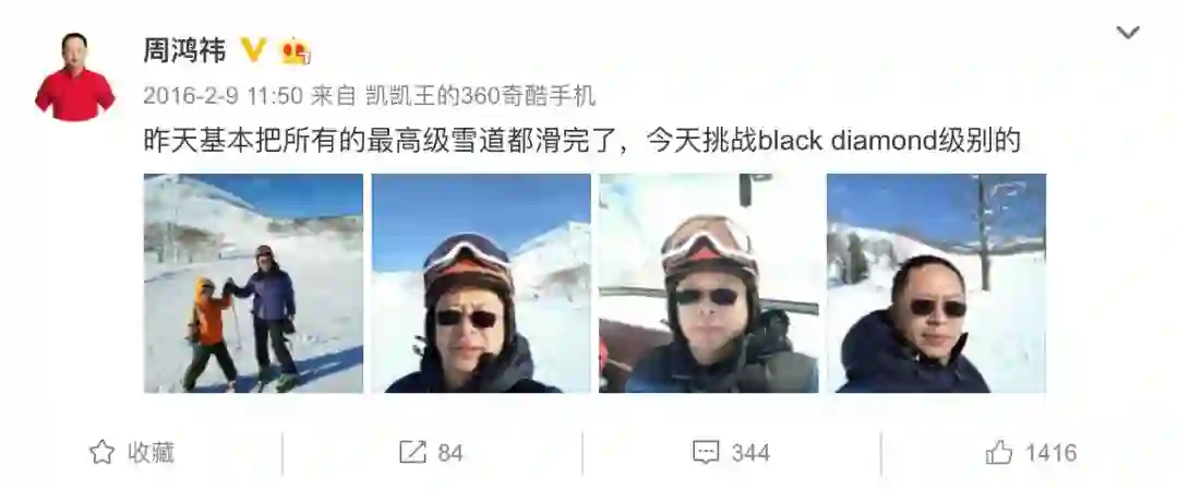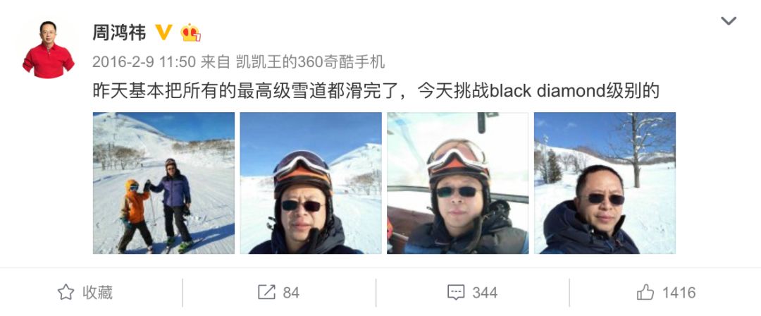 2016年春节,雷军、周鸿祎不约而同在微博上晒出滑雪照,仔细一看竟然是同一家雪场。鉴于二人经常隔空交火,这次究竟是提前约定,还是偶遇,就不得而知了。