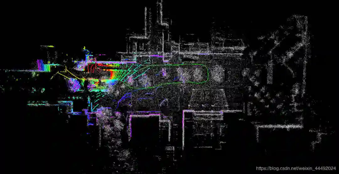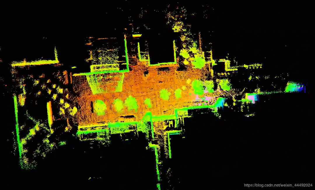 另外,下面的算法都使用hdl_graph_slam给到的室外数据集做了结果的测试,建模的图像如下所示。由于没有找到轨迹的真实值,没有对轨迹误差做比较分析。