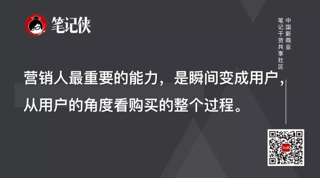 所以,营销人最重要的能力,是瞬间变成用户,从用户的角度看购买的整个过程。