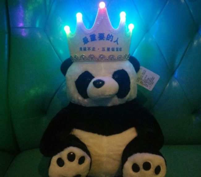 不是叫“熊猫不走”吗?那就用一个熊猫去送,熊猫的样貌,并且还会变魔术,会唱歌会跳舞。