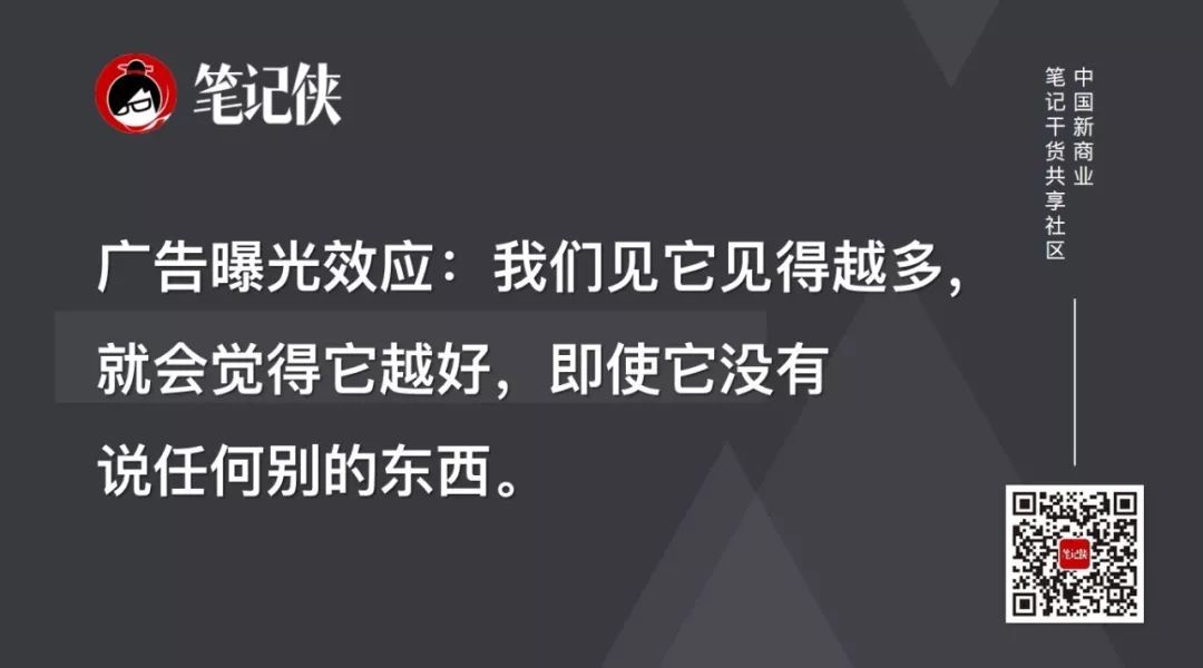 品牌也是一样,你听得越多越觉得它好,这就是广告曝光效应,也是广告起作用的原理。