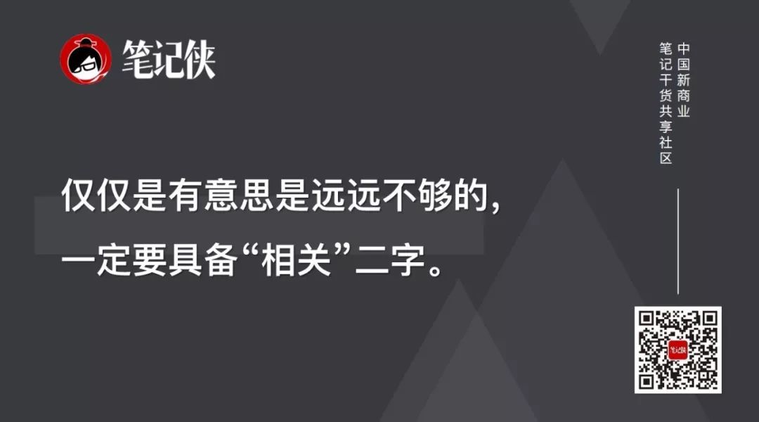 我们在做传统广告时,要让受众第一秒就发现这个广告与他相关,并且是高度相关。仅仅是有意思是远远不够的,一定要具备“相关”二字。