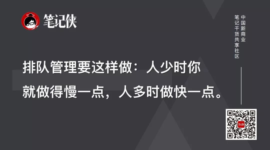 所以,排队管理要这样做,人少时你就做得慢一点,人多时做快一点。