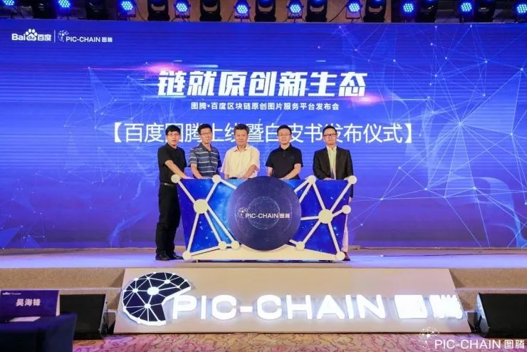北京市版权局副局长王野霏,北京市版权局版权管理处处长卢志鹏,首都版权产业联盟秘书长韩志宇,视觉中国执行董事、创始人柴继军,百度副总裁、搜索事业部负责人吴海锋,百度搜索首席架构师兼区块链实验室主任谭待、百度搜索公司市场部总经理陈志峰等嘉宾出席了百度图腾发布会。