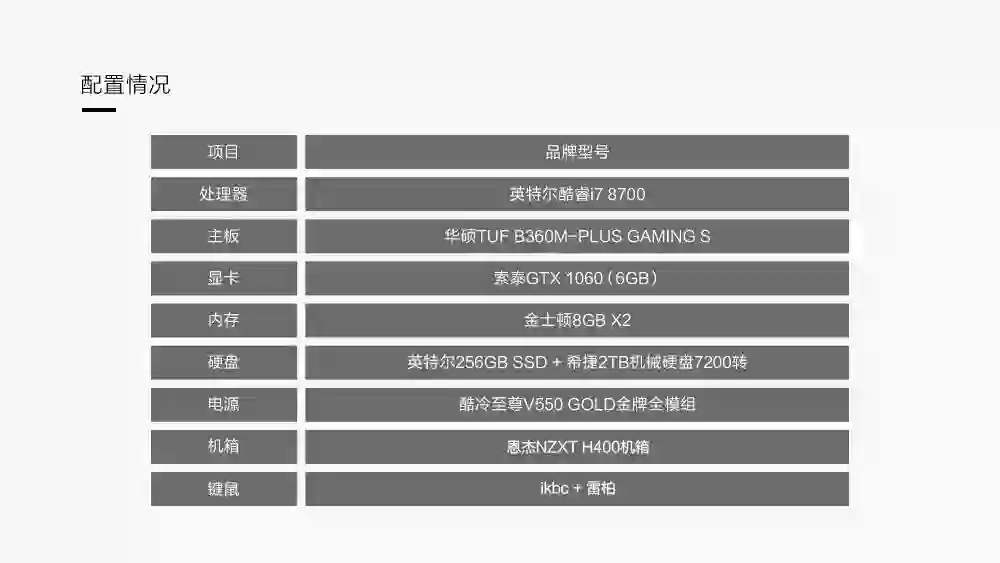 在安装之前先来交代一下测试安装的平台,这台电脑是我在年初购买的,配置并不算是特别高,但用来应对我日常的工作已经是绰绰有余了。主板是华硕 TUF B360M,处理器选择的是 Intel 8700,其余配置信息都在上图中。