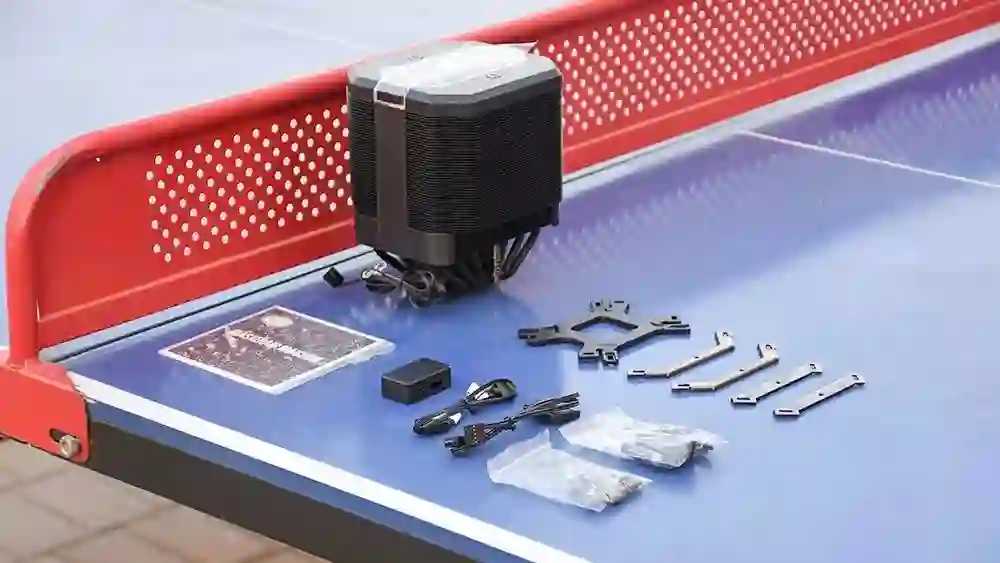 盒子里除了黑武士散热器主机之外,其余附件均放置在单独的附件盒中,包含安装支架、螺丝套装、线材、灯光控制器、CPU 硅脂和使用指南等。