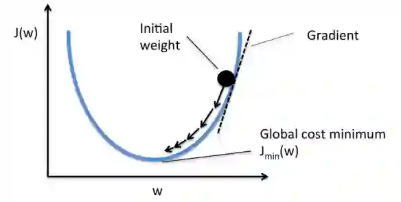 在每次数据集迭代之后,该方法以小增量的方式改变权重。通过计算损失函数在一组确定的权重集合上的导数(梯度),我们便能够知悉最小值在哪个方向。
