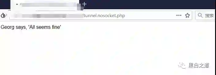 先将reGeorg的对应脚本上传到服务器端,reGeorg提供了PHP、ASPX、JSP脚本,直接访问显示“Georg says, 'All seems fine'”,表示脚本运行正常。