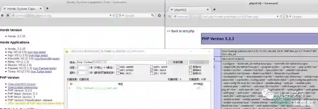 主域名:http://webmail.xxxx.xxx,Linux 、Apache 、 nmap扫描一下端口(nmap告诉我是windows很无奈,又想骗我。)没有获取到horde的版本号 继续往下进行,目录扫描的话先上御剑搞一波,不失所望。扫到一个test.php