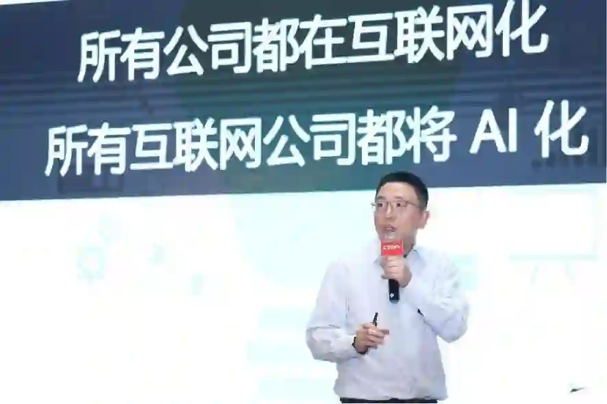 (图为蒋涛发表演讲《AI时代的新机遇及新使命》)