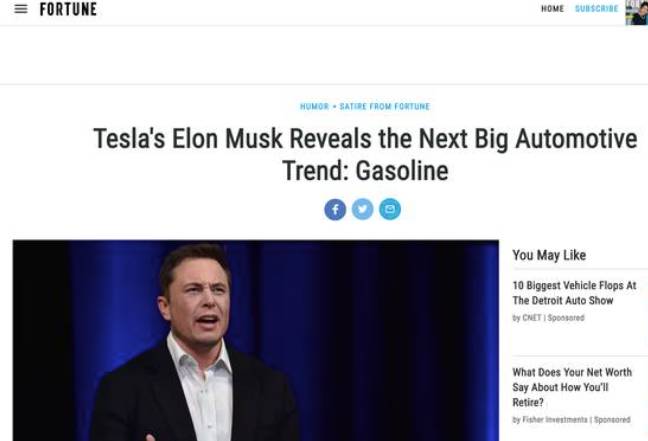 虽然错误比较可笑,但原因也不难理解。国内媒体环境本就竞争激烈,处在流量压力下的媒体编辑无时不在渴望着报道大新闻;看到“特斯拉打造燃油车”这样的爆炸性新闻,又是来自《财富》这样的可靠信源,当然不容错过。兴奋之下,一些经验不够丰富的同行忽略了基本常识和求证意识,对明显的恶搞提醒视而不见,不知不觉就掉进了可笑的大坑。