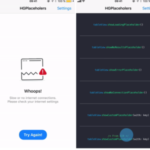 HGPlaceholders 是一个显示项目中任何 UITableView/UICollectionView 占位符和空状态的库。