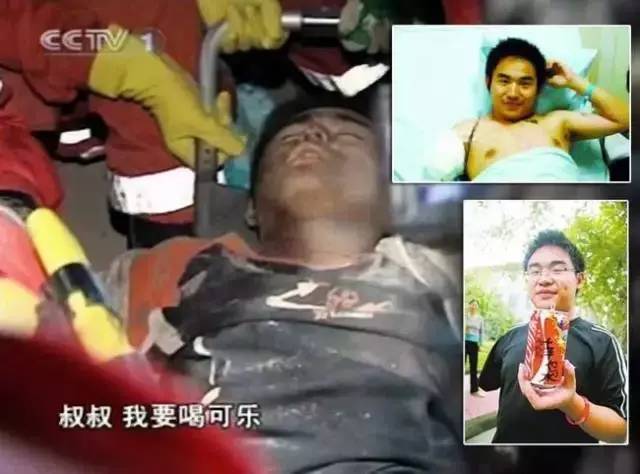 汶川地震,一名少年被救出后说:“叔叔,我要喝可乐,要冰冻的”。瞬间成为全国知名的可乐男孩。