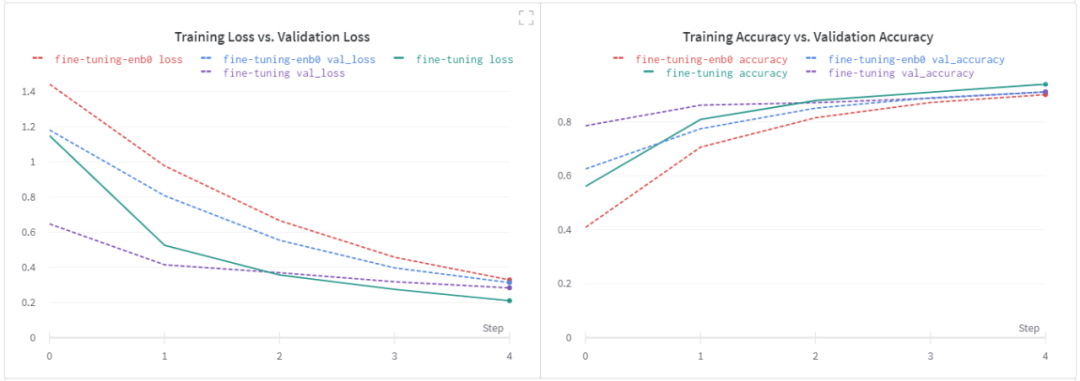 在这次实验中,我选择了 EfficientNet B0作为基础模型。让我们先来看看我用它得到的微调结果。注意,如前所述,所有其他超参数都保持其默认值。