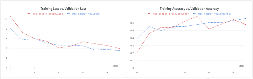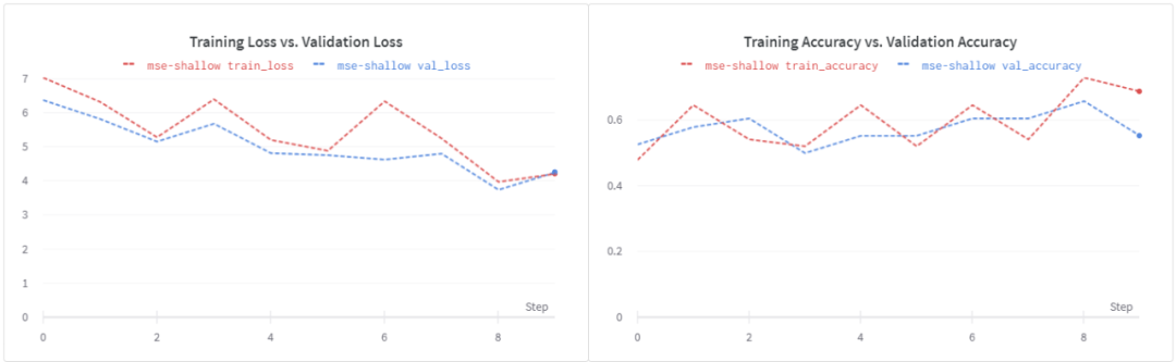 使用了MSE的损失,我们可以看到验证精度大幅下降到~56%。同样的损失也出现了类似的情况,这表明需要进行正则化。