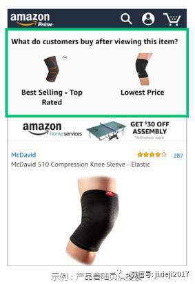 简化并仅选择性显示结果,以便于决策。亚马逊对其一些产品建议做得很好。我搜索了一个护膝,看到我从Google搜索结果登陆的页面下方。亚马逊知道关于每个相关产品我会选择购买的概率,而不只是给我30个类似产品的排序选项,我得到了一个二选一的简单选择方案——最便宜或最畅销+最高评价的产品。