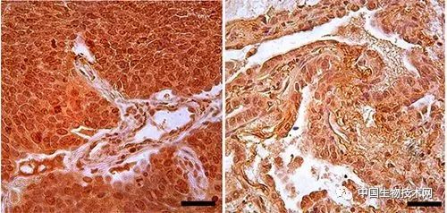 FAK6,7病人肺癌组织FAK蛋白磷酸化水平(左)比FAK野生型病人(右)磷酸化水平明显增高