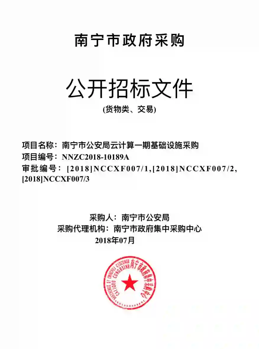 南宁市公安局云计算一期采购招标公告近日发布,内容如下: