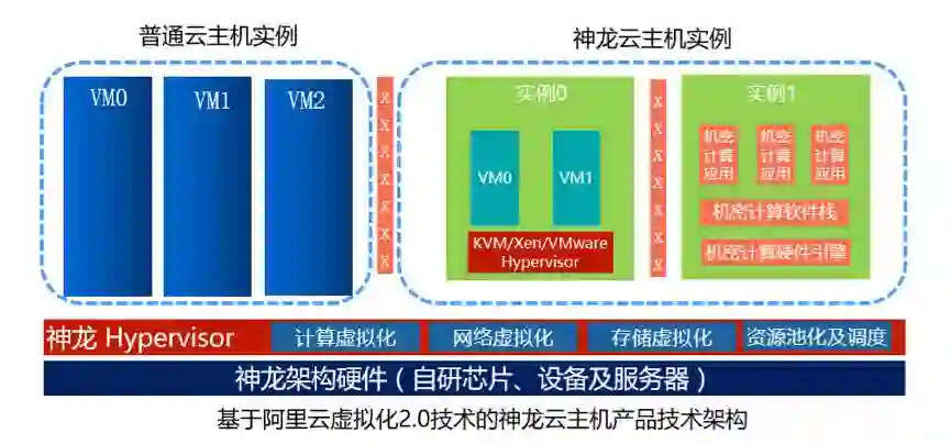 神龙云服务器不仅具有虚拟机的灵活性和弹性,同时具备物理机的一切特性和优势,因此也具备再次虚拟化的能力,线下的专有云均可无缝平移到阿里云上,而不用担心嵌套虚拟化带来的性能开销,为客户上云提供一种新途径。