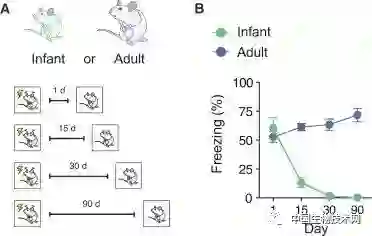 在该研究中,研究人员对幼年小鼠进行训练,让它们将一种特定的盒子与微弱的脚部电击联系起来。小鼠大约会在15天的时候忘记电击,这几乎类似于人类在7岁左右忘记了婴儿期的记忆。
