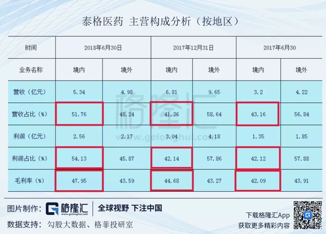(通过上图,可以看出,境内的营收比重、利润比重和毛利率在不断增加。也说明公司的战略发生了某种倾向性变化,逐渐由国外大型药企往国内创新药企业去倾斜。而且,据此可以推导出泰格医药2018年的整体营收大约在21.5亿元,2018年的整体利润金额大约在5.2亿元。则每股收益EPS是5.2/5=1.04元。
