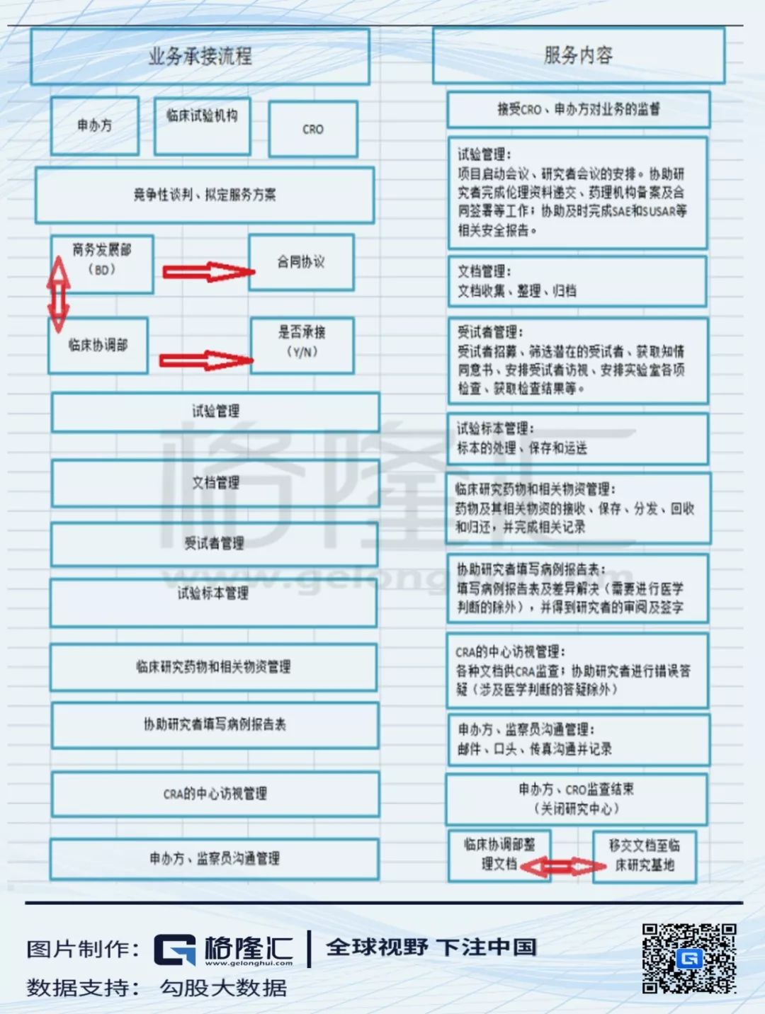 另一块是近几年迅速山寨起来的SMO业务(指专门处理临床资源管理的单位)。SMO就是CRC临床监查护士,在医院里面进行临床试验时,除了CRA(医学监察员),还会配备CRC。CRC的主要工作是在研究者对一些数据、病人的的资料进行整理时,提供帮助。