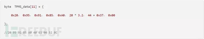 假如说要发射出TPMS_data其中的数据,最后会发射出来的就是20959185A0406300528C这串数据,数据的结尾528C就是算出来的CRC