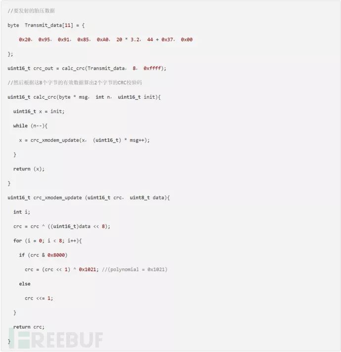 这个就是算出结尾两个字节校验码的代码,接收端会先判断这两个字节的校验码,如果是不对,接收端是不会去响应的。