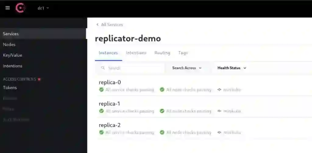 图 3:Consul 服务注册表 UI 显示健康的复制集群