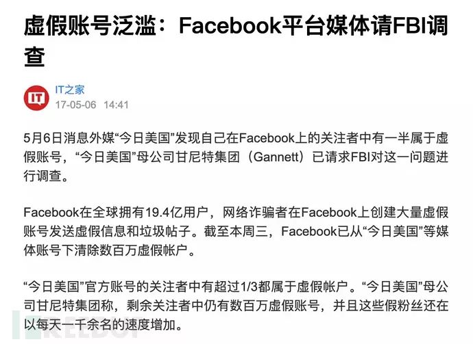 2019年2月,有报告称:Facebook 20亿月活用户一半都是假账号;