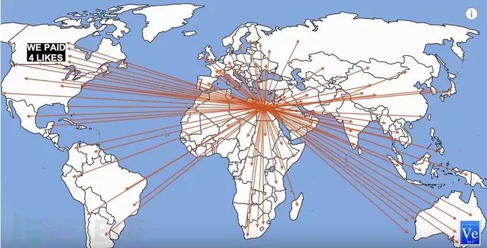 在上述博主的视频中通过统计,发现他的“虚假粉丝”主要来源于发展中国家。Facebook在2017年的观察报告中也指出,大部分虚假帐户来自孟加拉国、印度、埃及和巴基斯坦等国。而这背后也反映出整个虚假账号、虚假流量市场不同地域的犯罪成本差距。与发达国家比较,发展中国家的确存在相关法律不健全、监管不到位、惩戒体系不完善、意识很欠缺等问题,甚至在斯里兰卡、埃及、印尼等地区还存在“机器工厂”,点击1000次只需要1美金。总体来说犯罪成本都远远低于发达国家,所以也就出现下图的情况。