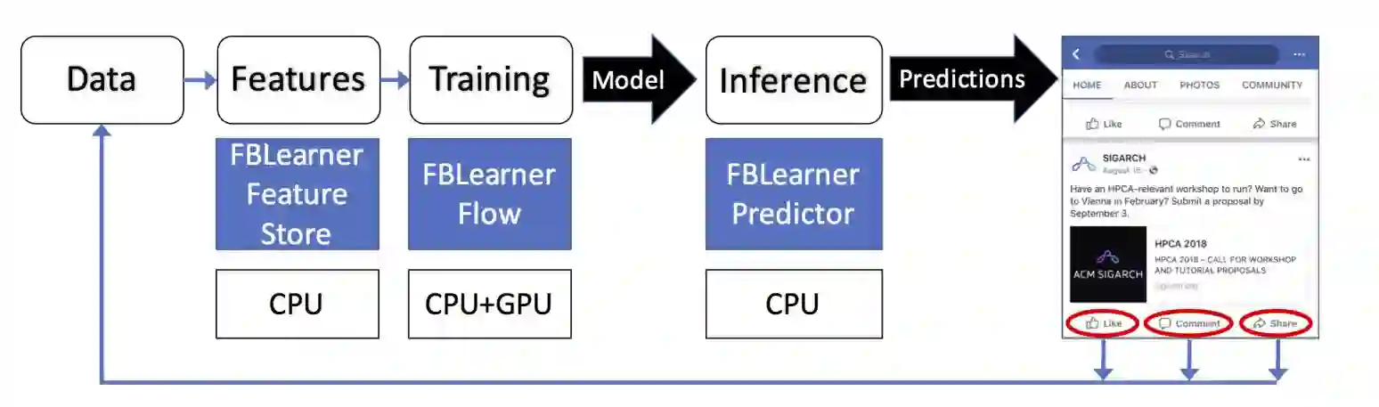 在 Facebook,研究人员发现了应用机器学习平台的规模和驱动决策方面设计中出现的几个关键因素:数据与计算机联合布局的重要性、处理各种机器工作负载的重要性,不仅仅是计算机视觉,以及来自日计算周期的空闲容量的机会。在设计端到端的解决方案时,研究人员考虑了每一个因素,这些解决方案包括定制设计的、现成的、开放源码的硬件,以及一个平衡性能和可用性的开源软件生态系统。这些解决方案为服务了全球超过 21 亿人的大规模机器学习工作提供了动力,反映了专家们在机器学习算法和系统设计方面的跨学科努力。