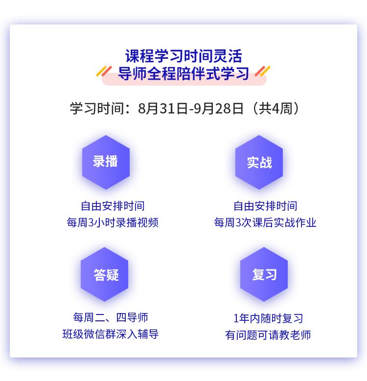 “起点学院&腾讯课堂”联合打造文案训练营,通过4周的系统学习, 11次文案实操,老师的1对1批改和班级群内答疑。
