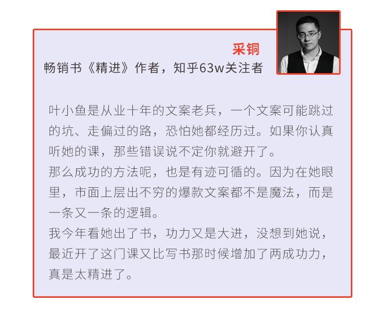 你逐步掌握: 文案的底层逻辑、标题/内容/结尾的写法/、销售文案的写法、品牌文案的写法、文案传播的要素等