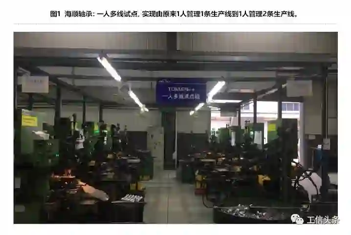 缓解了企业招工难题。海顺轴承是一家轴承套圈生产企业,厂区地理位置相对偏僻,由于交通不便等原因始终存在“招工难”的痛点,除了以前老厂的员工,好员工很难招到。2018年6月,海顺轴承与陀曼智造签订了数字化改造战略合作协议,重点目标是基于实现从“一人一线操作”到“一人双线操作”,即要达到同等产量情况下人员减少50%。经过近半年的改造和提升,对比改造前后数据,取得初步成效:人均月产量提高了55.8%、人均月工资增加了82.8%,突破万元;设备有效产出率从53.6%提高到81.5%;智能化技术的应用降低了对员工操作技能的要求,减少了企业对员工技能的依赖;同时企业可以把节约的劳动力安排到新的生产线,实现了“减员增效”。员工收入大幅度提高,应聘报名的人多了,这极大地缓解了企业当下“招工难”的问题。