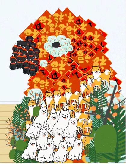 通过将这些元素自由排列组合,一张张喜庆的全家福就在春节到来之前出街了。
